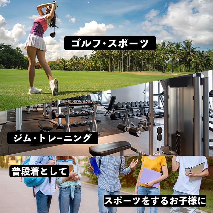 〈普段使いから運動時、ゴルフウェア・トレーニングウェアとしてまで幅広いシーンで〉
