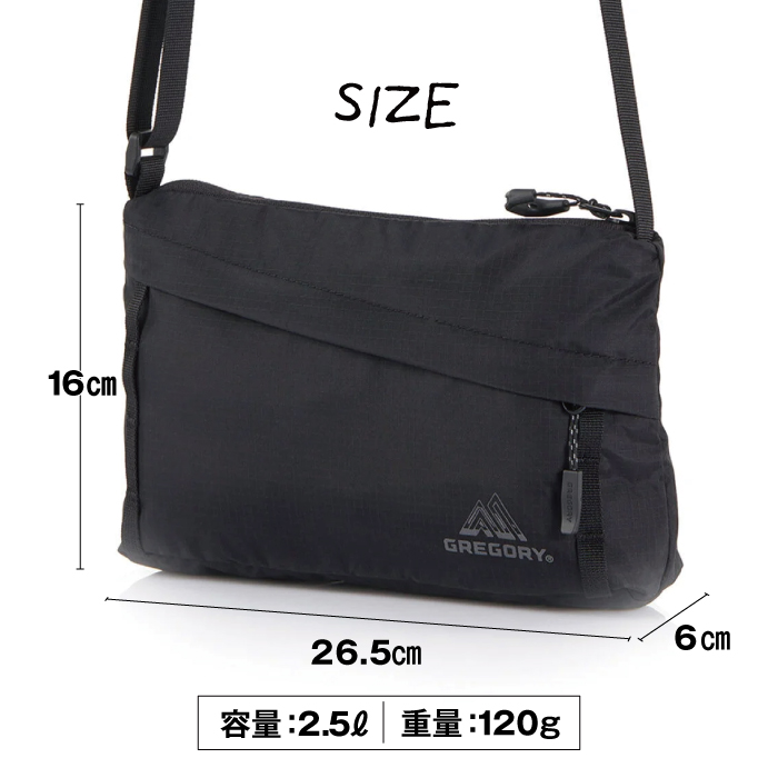 グレゴリー クロスボディバッグ AL ショルダー メンズ レディース 肩掛け サコッシュ サブバッグ アウトドア フェス 旅行 通勤 お出かけ 買い物 レジャー ドライブ 小型 2.5リットル 軽量 ユニセックス お揃い 黒 ブラック GREGORY CROSSBODY BAG AL