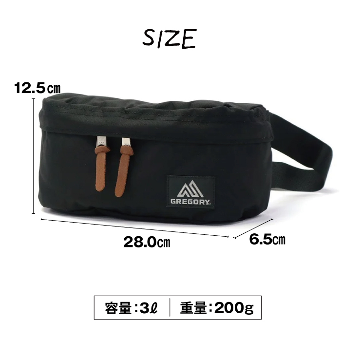グレゴリー スタンダードウエストパック ヒップバッグ メンズ レディース 肩掛け サコッシュ サブバッグ アウトドア フェス 旅行 通勤 お出かけ 買い物 レジャー ドライブ 小型 3リットル ユニセックス お揃い 黒 ブラック GREGORY CLASSIC STANDARD WAIST PACK