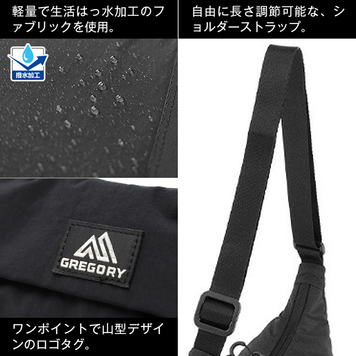 グレゴリー スージーハーフムーンショルダー レディース 肩掛け サコッシュ サブバッグ フェス 旅行 通勤 お出かけ 買い物 レジャー 小型 軽量 はっ水 1リットル 女性 婦人 黒 ブラック GREGORY SUSZY HALFMOON SHOULDER S