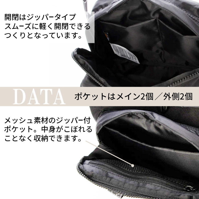 ナイロンと比較して7倍の耐久を誇るコーデュラナイロンを使用しているショルダーバッグ