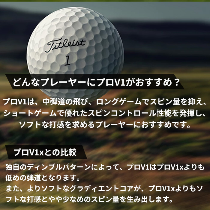 タイトリスト プロV1は、スピード、スピン、打感、最高の組み合わせのゴルフボールです。