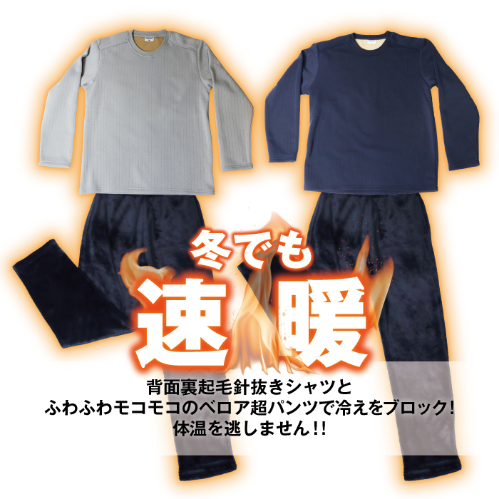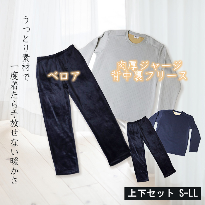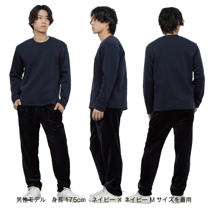 PROVENCE PV-516 / プロヴァンス メンズ レディース 上下異素材 起毛 針抜きスウェット ボアパンツ ルームウェア ナイトウェア 部屋着 パジャマ 上下セット