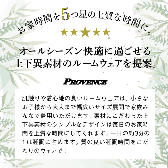 PROVENCEからオールシーズン快適に過ごせる上下異素材のルームウェアを提案。
