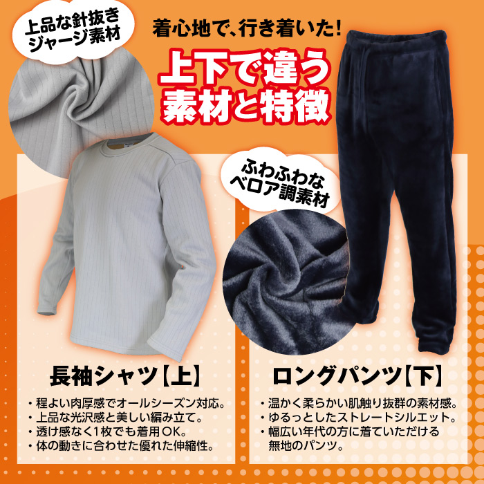 着心地を考えて行き着いた!上下異素材の肌触りや着心地の良いルームウェアです。