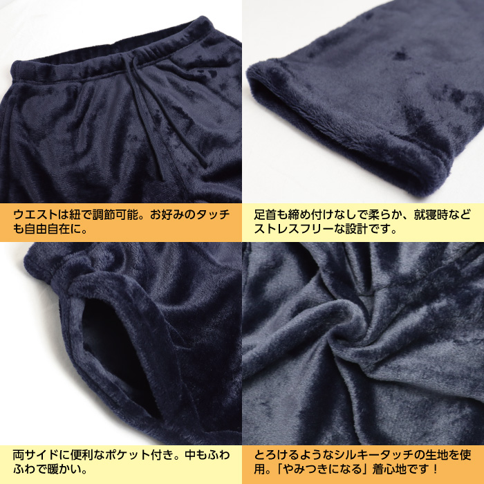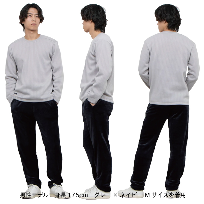 ●ロングパンツ【下】は、ふわふわなベロア調素材。