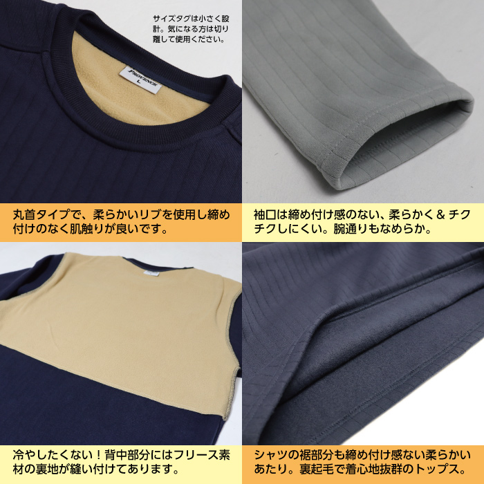 長袖シャツの背中部分にはフリース素材の裏地が縫い付けてあり、