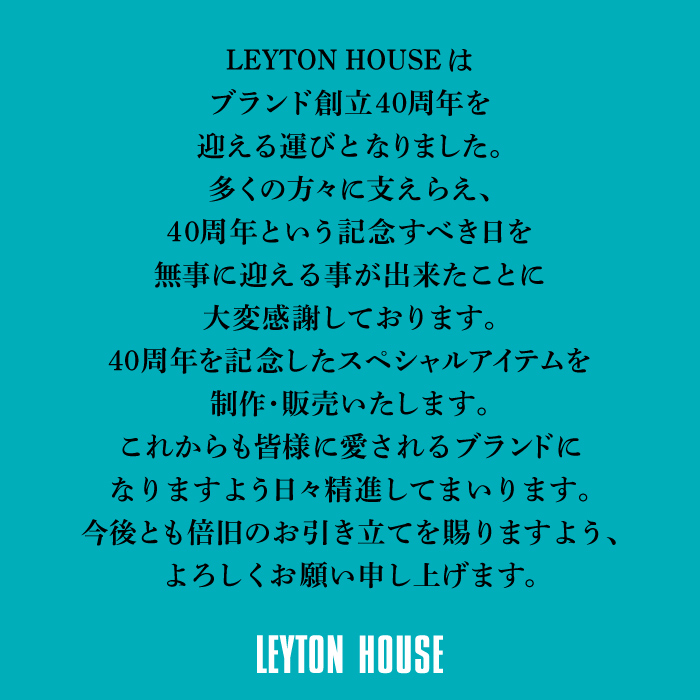 LEYTON HOUSEはブランド創立40周年を迎える運びとなりました。