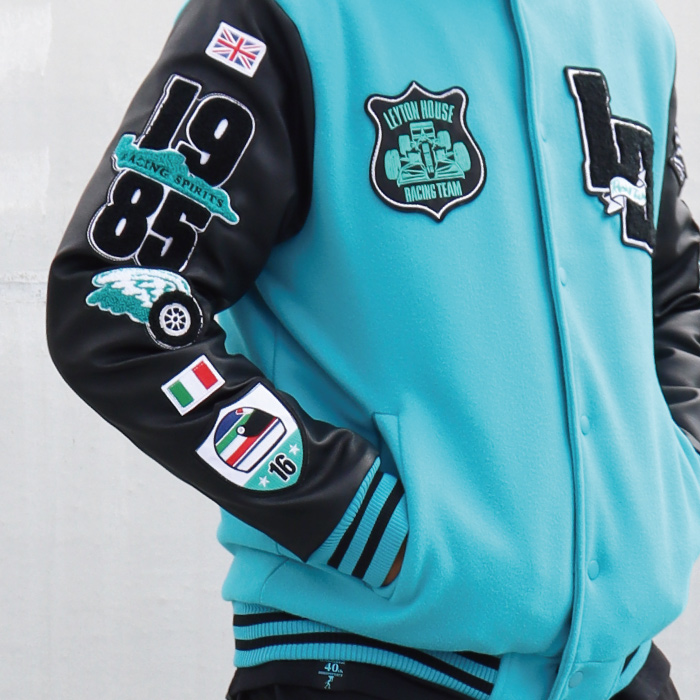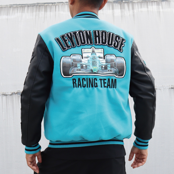 レイトンハウス 40周年記念 限定 レーシングチーム 復刻 スタジアムジャンパー スタジャン ブルゾン アウター ジャケット メルトン メンズ F1 モータースポーツ レトロ バブル 昭和 ワークス レイトンブルー 豪華 刺繍 LEYTON HOUSE anniversary limited 紳士 男性