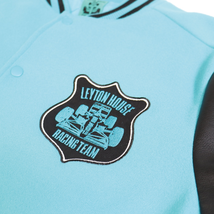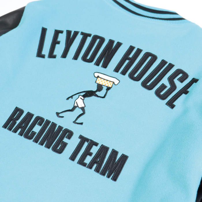 背面に、F1マシンのプリントワッペンとLEYTON HOUSEのパイルワッペンを大胆に配置。