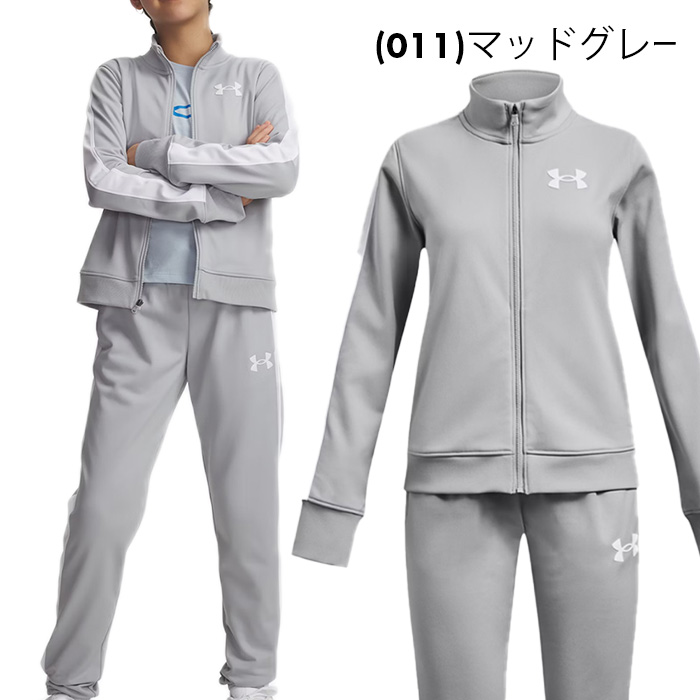 アンダーアーマー ジャージ上下 キッズ ジュニア 冬用 あったかい 子供 ガールズ セットアップ パンツ トラックスーツ 長袖 トレーニング スポーツ 部活動 吸汗速乾 UNDER ARMOUR ブラック グレー スタンドカラー