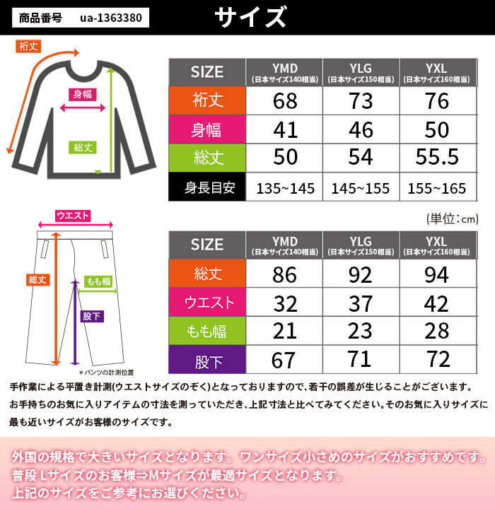 140~160cmのレディース/子ども用のアンダーアーマーセットアップ