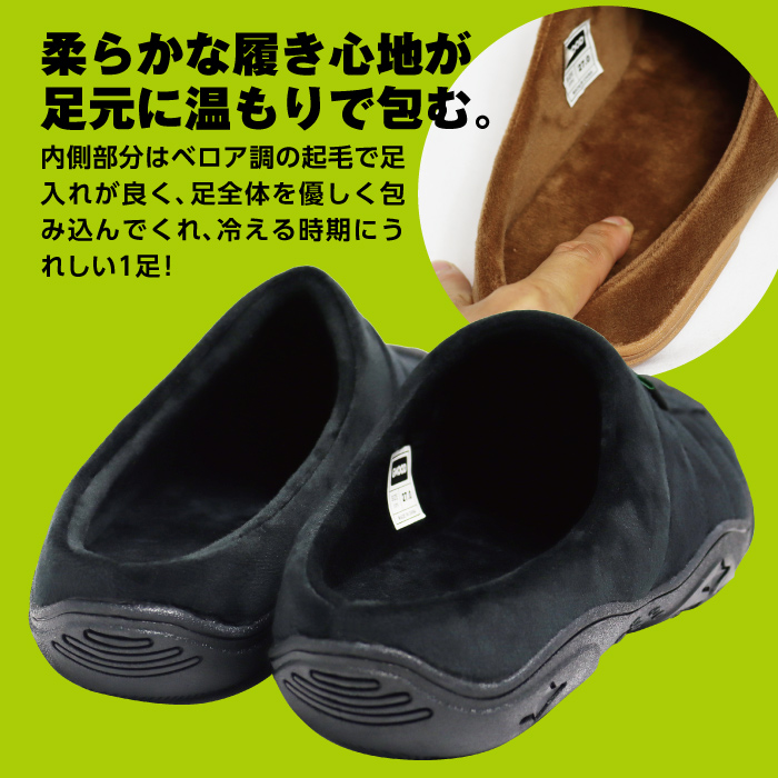 ジームード あったか サーモサンダル スリッパ つっかけ ルームシューズ オフィス履き サボ クロッグ ウォーム ウィンター 防寒 シンプル メンズ 男性 紳士 ベロア 起毛 クッション トゥーガード 軽量 秋 冬 散歩 お出掛け ワンマイル GMOOD
