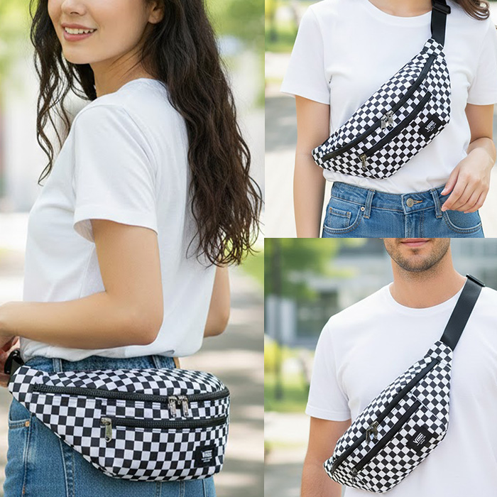 ・チェッカーボードテーマのボディバッグ