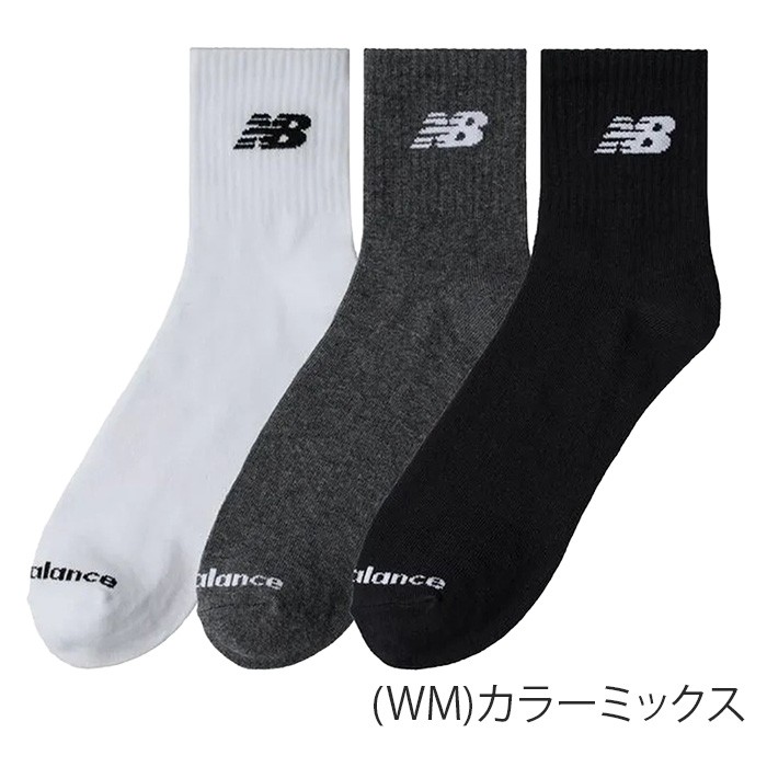 newbalance ニューバランス 3Pソックス ミドル丈 3足組 ライトウエイト メンズ レディース ジュニア 靴下
