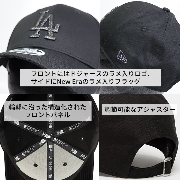 ・フロントにはドジャースのラメ入りロゴ、サイドにNew Eraのラメ入りフラッグ