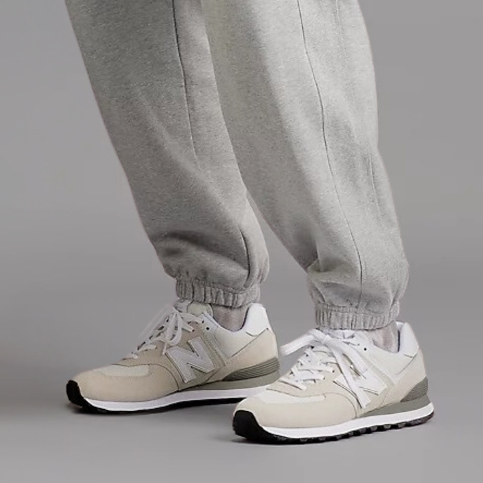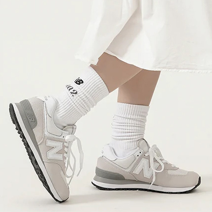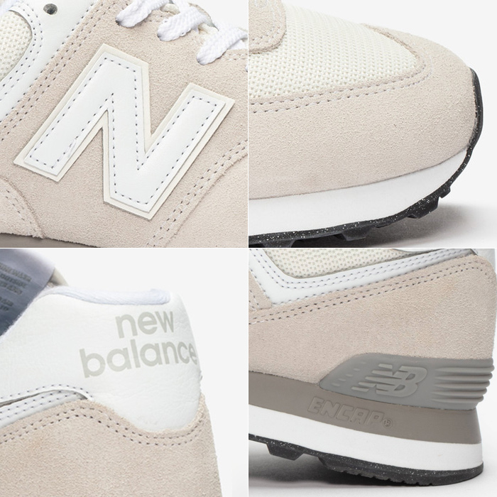 ニューバランスのアイコニックモデルである「574」のデザインラインのまま、