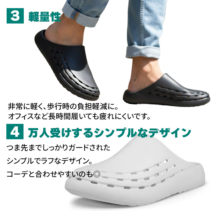 ・快適な履き心地:解剖学に基づいたフットベッドは足の形にフィットし、長時間履いても疲れにくい仕様。