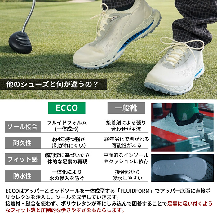 「一度エコーを履くと他のシューズを履く気になれない!」とゴルファーの間で根強い人気を持つECCO。