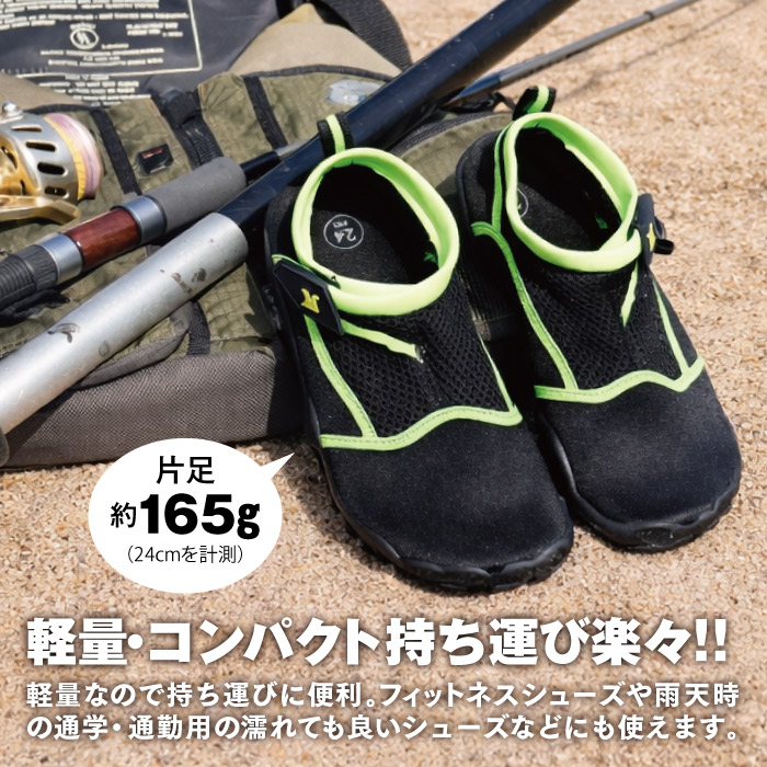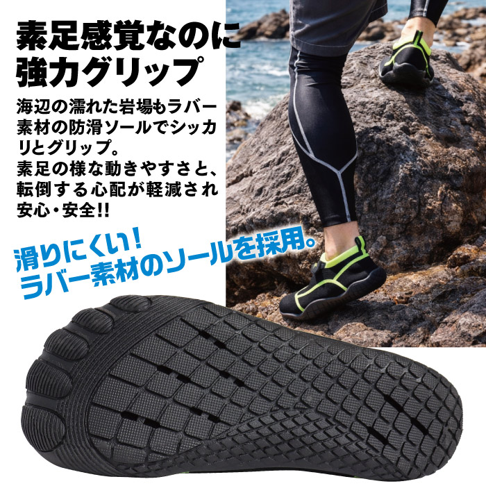 濡れた岩場や桟橋でも安心。